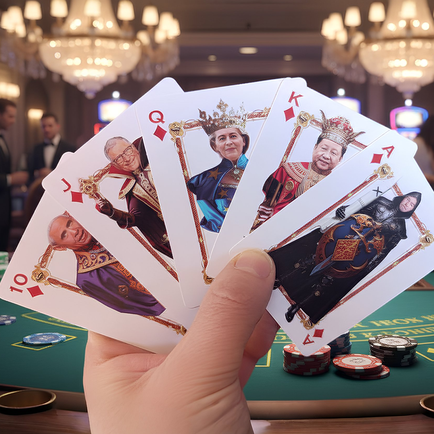 Any resemblance to real public figures is purely coincidental, symbolic, or simply a product of your imagination. This deck of cards is a form of satire and social commentary — not an endorsement, accusation, or biography. Please don’t judge us — it’s just cards. Let’s play!